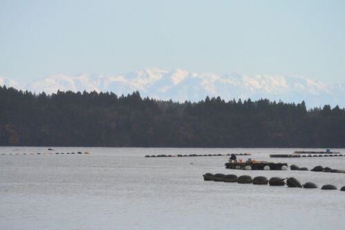 穴水町 麦ケ浦 一旦国道に戻り 川尻から県道34号へ マリーナ過ぎる 冬枯れした 背景にCB550FOUR万年号を置くと まるで 寒すずめカラー ここは 鹿波地区 対岸に能登島 小高い丘に新しくできた道路の反対側は 神社です ココも含め 自身で壊れてしまった 石作り…