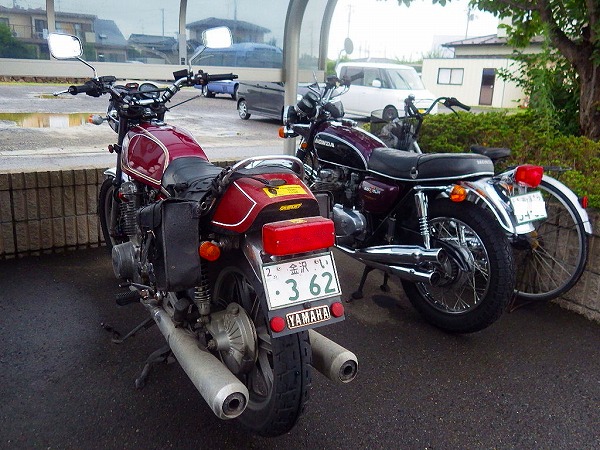 私のバイクの隣にはピカピカのCB500FOUR